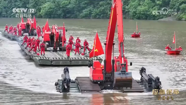 2025年6月,山河智能水陆两栖挖掘机参与“应急使命·2025”极端灾害事故场景新质救援能力检验性演习。